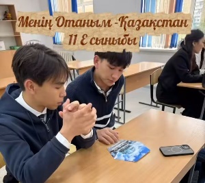 11 «Е» сыныбында 2025 жылдың 01 қыркүйек күні «Менің Отаным – Қазақстан» тақырыбында сынып сағаты өткізілді